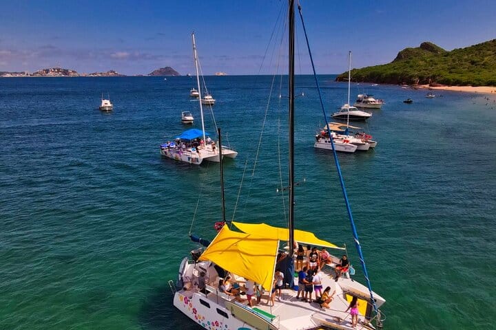 Hey there! Just wanted to share this amazing find with you - a private 43 feet Trimaran in Mazatlan that can accommodate up to 25 passengers. It's decked out with a kitchen, bedroom, bathroom, and even water sports gear like kayaks, paddleboards, and snorkeling equipment. Don't forget the floating mat for some extra fun! The boat has big speakers, a shaded area, and comfy benches for chilling out. The crew onboard are not only skilled sailors but also super friendly. Sailing in Mazatlan Bay is an incredible experience, and Deer Island Bay is like a dream come true for water sports enthusiasts.